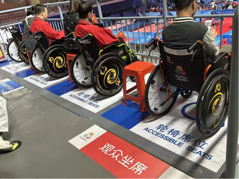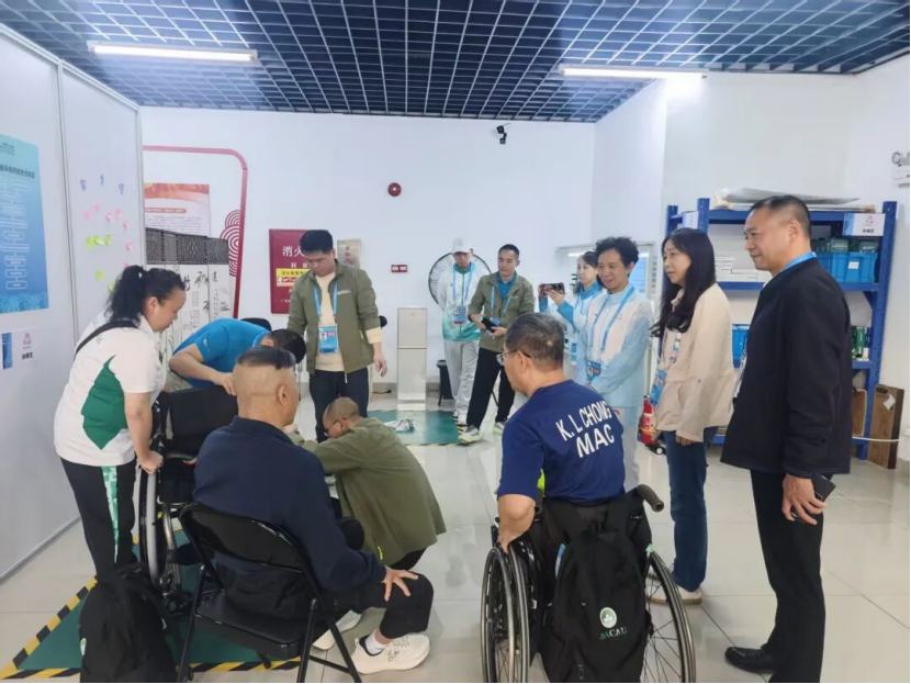 本次比赛场馆严格按标准进行了无障碍改造,构建了覆盖全流线的无障碍系统,包括设置3台无障碍电梯、1台升降平台、19个轮椅席位、12个无障碍卫生间与10个淋浴间等,提供普通观众席1750余个、无障碍观众座席25个,并配备了无障碍信息查询屏、触摸式盲文标识等智能辅具,全力保障运动员安全、便捷参赛。赛事组织与服务同样细致周到,裁判与志愿者团队专业热情,交通保障精准高效,根据参赛队伍的需求,定时班车与应急调度服务,根据抵离信息制定“一车一方案”的接送计划,目前已累计投入各类保障车辆145台,完成321车次运输任务,全面覆盖抵离、分级、训练等各类交通需求。
