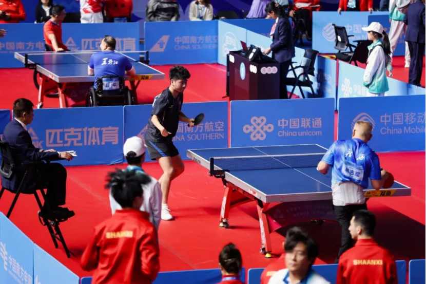 比赛首日进行了男团、女团及视力残疾组单打等项目。运动员们神情专注,挥拍有力,每一分都全力以赴,精彩回合不时引发观众席的阵阵掌声。尽管部分运动员在行动或协调能力上面临挑战,但他们用精湛的技艺、灵活的战术和永不言弃的精神,完美诠释了残疾人体育的独特魅力与深刻内涵。